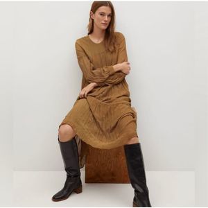 This flowy pleated dress from Mango is the best to spice up your look. Featuring a pleated design, midi design, long puffed sleeves, and buttoned cuffs, it is the one for every season and occasion. • Crewneck • Pleated design • Imported • Wide design • Long puffed sleeves • Buttoned cuffs Size & Fit • Approximate 47.05" long Material & Care • Machine Washable • Shell and Lining- Polyester