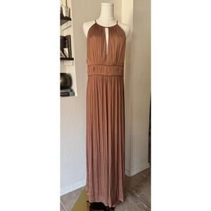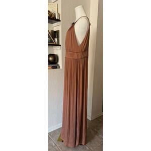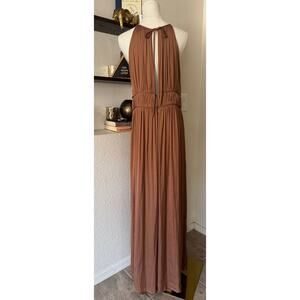 Mango Flowy Wide Leg Halter Jumpsuit With Pleated Details in Copper Size Large