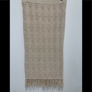 Mango Fringed detail knitted Midi skirt Size L NWT perfect for winter/Spring