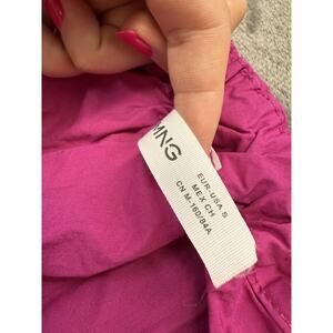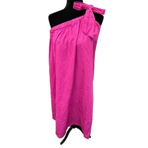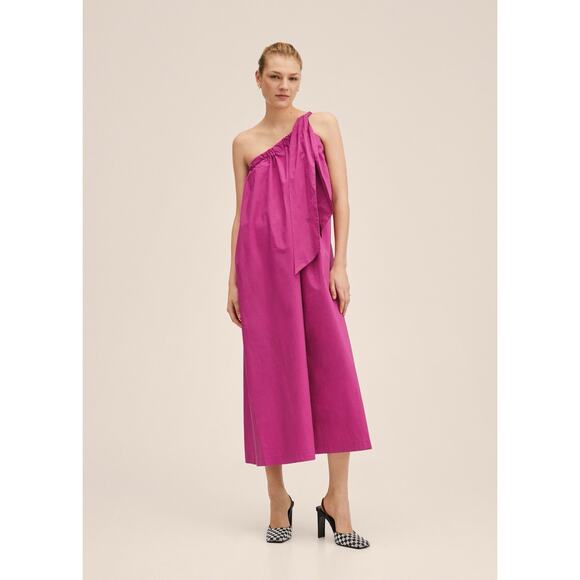 Make a statement in this stunning fuchsia one-shoulder dress by Mango. Crafted from a crisp cotton blend, this dress features a voluminous silhouette with an oversized feel, making it effortlessly chic and breathable for warm weather. The vibrant magenta hue turns heads, while the ruched neckline and bow detail on the shoulder add a playful, elevated touch.