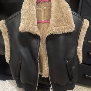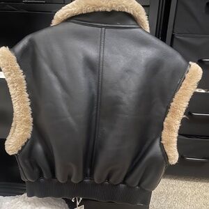 Beautiful Mango black leather and beige fur vest. Brand new with tags.
