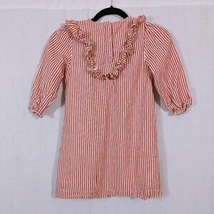 Long sleeve. Frilly detailing on the front and back. "Let the Sun Shine" embroidery. Three button back closure.