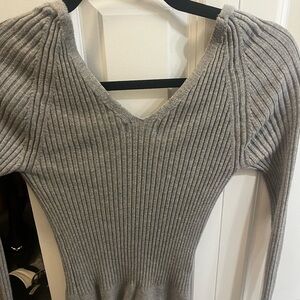 This Mango cardigan in a sophisticated gray hue features a ribbed knit design that adds texture and style. Crafted from a fine, stretchy material, it offers a comfortable fit that contours to the body. The long sleeves and scoop neckline make it a versatile addition to any wardrobe.