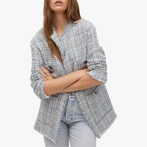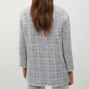 Chic gray tweed blazer. Long sleeves. Open front design. Perfect for layering.