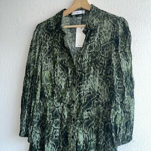 Mango Green Snakeskin Patterned Button Down Dress Sz. M NWT!