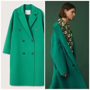 Mango Handmade Wool Blend Coat Green