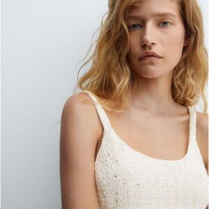 MNG Tweed Dress With Thin Straps and Subtle Sequin Ivory M