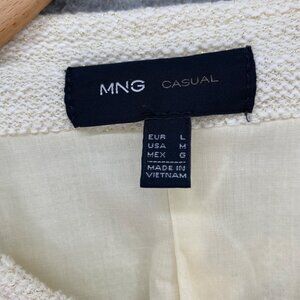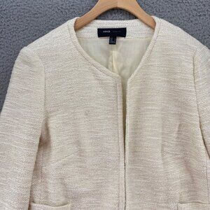 Mango Jacket Womens Medium Ivory Gold Shimmer Cropped 3/4 Sleeve Pocket Casual