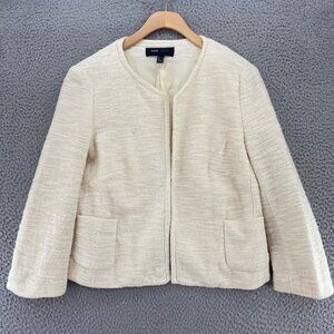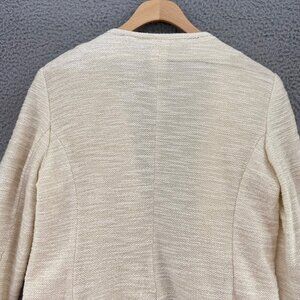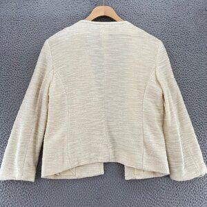 Mango Jacket Womens Medium Ivory Gold Shimmer Cropped 3/4 Sleeve Pocket Casual*