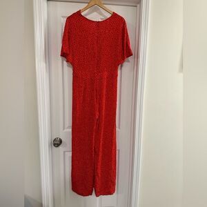 Mango Jumpsuit Medium Red Polka Dot Tie Front Wide Leg Short Sleeve