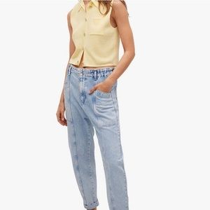 Mango Knit sleeveless Button Down | Flower Rhinestones Button Details (No missing rhinestones) | Beautiful baby yellow color | Size Large | Never Used | No Stains or holes