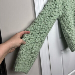 Mango Large Alpaca Blend Mint Green Crop Chunky Open Knit Long Sleeve Sweater