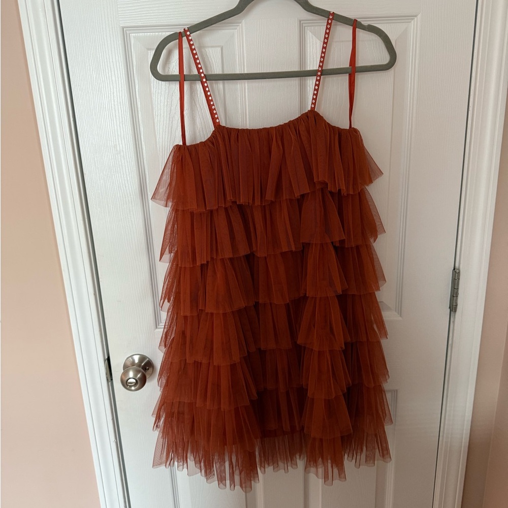 Mango Layered Ruffle Dress - Rust