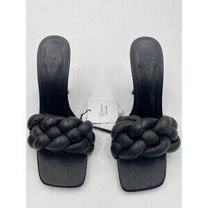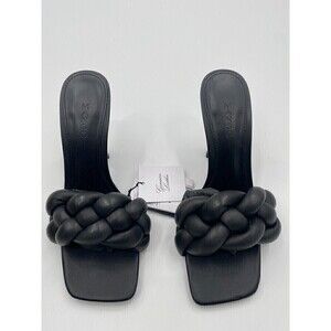 Mango Leather braided Sandals Black High Heels Women Size 37