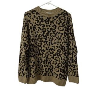 Mango Leopard Print Crew Neck Oversized Sweater(Size Small)