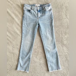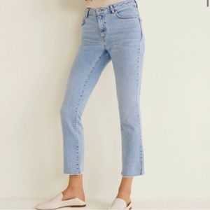 Stylish straight leg jeans. Light blue color. Perfect for casual wear.