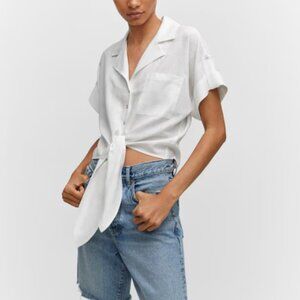 Mango Linen Shirt with bow - Size Large - EUC
