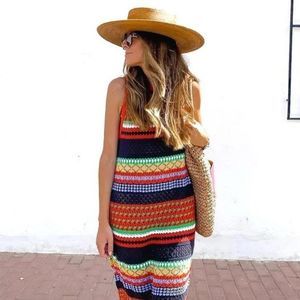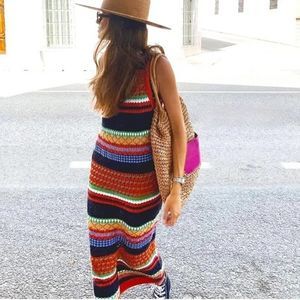 Mango Long Crochet Striped Knit Dress Colored New