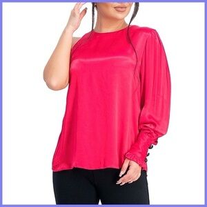Mango Long Sleeve Magenta Pink Satin Blouse | Top