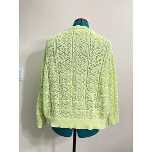 Mango MGO Openwork Knit Cardigan Yellow Winter Boho Urban V Neck Plus Size 3X