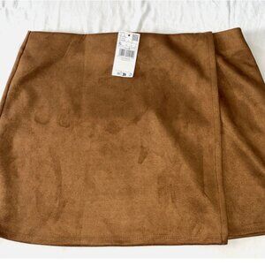Mango MNG Brown Faux Suede Faux Wrap Mini Skirt Elasticated Waist Size XL NWT