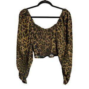 Mango Leopard Print Smocked Square Neck Puff Sleeve Top. Size 4