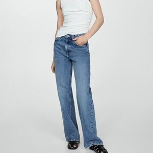 Brand new with tags, never worn, Mango MNG mid-rise straight jeans in medium blue, size 2. Denim-style cotton fabric. Long design. Straight design. Mid-rise. Belt loops. Five pockets. Zipper and button closure. Inseam 32.3 in. Festival Season. Orig. $69.99. These jeans run big in size so a size 2 would most likely fit a normal size 4 or 6.