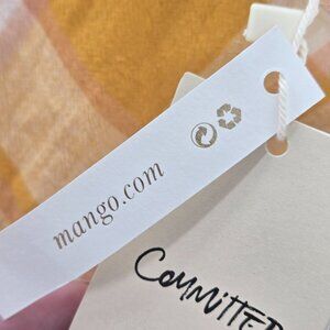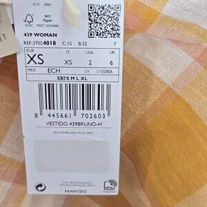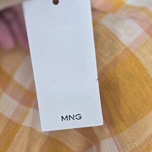 Mango MNG Mustard Yellow Checkered Gingham 100% Cotton Pockets Mini Dress XS