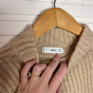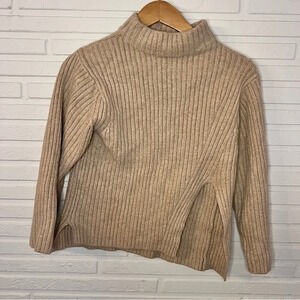 Mango MNG Neutral Tan Split Hem Ribbed Sweater, Women’s Size Small