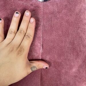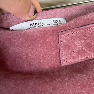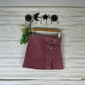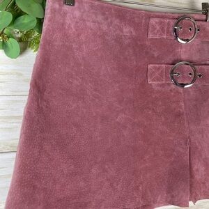 Mango MNG Pink Genuine Pigskin Leather Suede Buckled Mini Skirt
