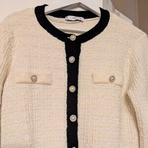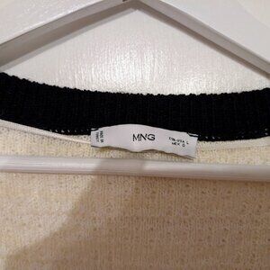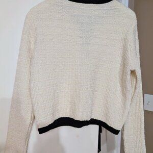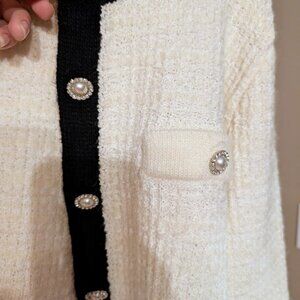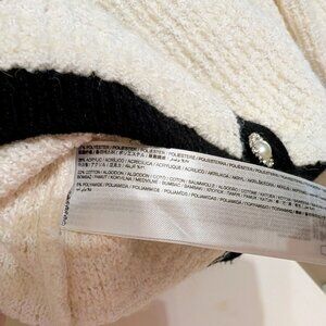Mango MNG Pocket Tweed Cardigan Sweater Large Off White Black Cotton Blend EUC