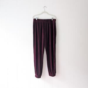 Mango MNG Purple/Red Velvet Trousers Wide Leg Jogger Pants, size L