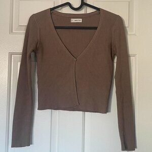 Mango (MNG) ribbed button cropped cardigan in sand. Size XXS, excellent condition.