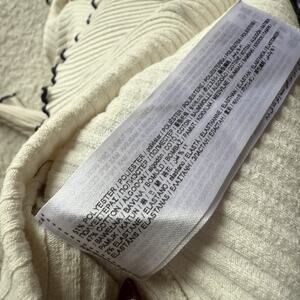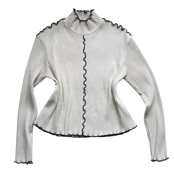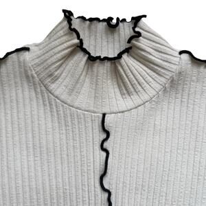 Mango MNG Ribbed Long Sleeve T-Shirt Cream Black Lettuce Edge Trim Mock Neck XS