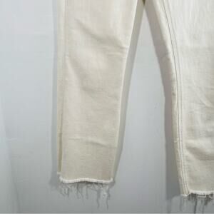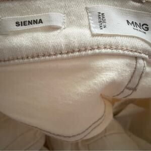 Mango MNG Sienna Kick Flare Crop jeans White Cream High Rise Fray Hem Denim 4