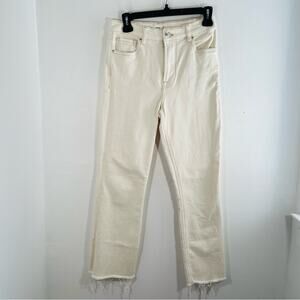 Mango MNG Sienna Kick Flare Crop jeans White Cream High Rise Fray Hem Denim