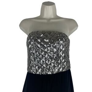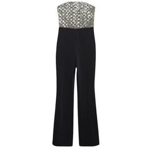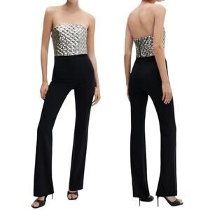 Mango MNG Strapless Sequin Quilted One Piece Jumpsuit Gold Black Size S