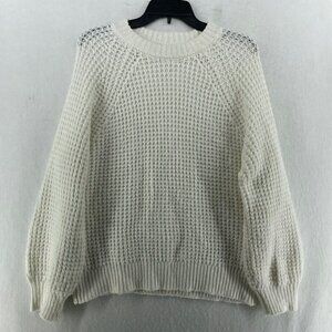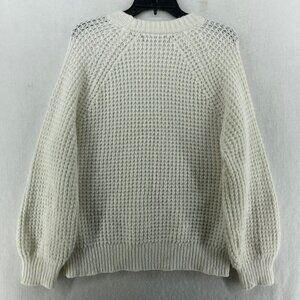 Mango MNG Sweater Women's M Off White Ribbed Trim Loose Knit Crew Neck Pullover