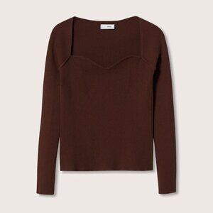 Mango MNG Sweetheart Neck Sweater Ribbed Knit Jumper in Brown Women's S