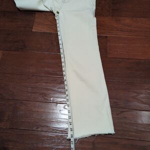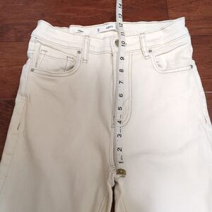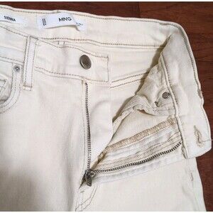 Mango MNG Sz 2 Sienna Kick Flare Crop Jeans White Cream High Rise Fray Hem Denim