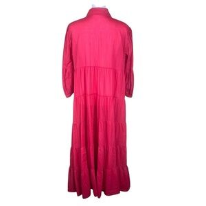 Mango MNG Women’s 6 Red Tiered Maxi Dress Button Front Lightweight Flowy Summer
