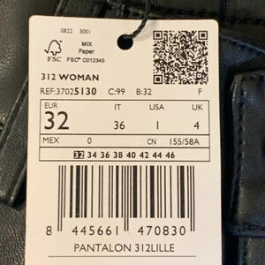 Mango MNG Women's Leather Effect High Waist Straight Pants Size 32 NWT