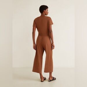 Mango MNG Women's Ribbed V Neck Burnt Orange Wide Leg Jumpsuit Size Small