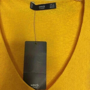 Mango MNG Women’s XS Marigold Yellow V-Neck Tank Top Split Hem Layered