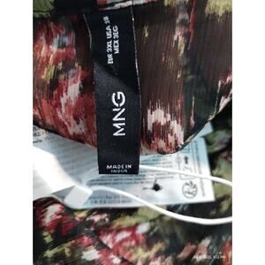 Mango MNG Women's size 3X Sheer Floral Bow Tie Puff Ruffle Sleeve Carol Blouse Flowy Boho Casual Feminine Whimsical Fairy Button up Blouse Top