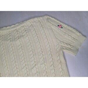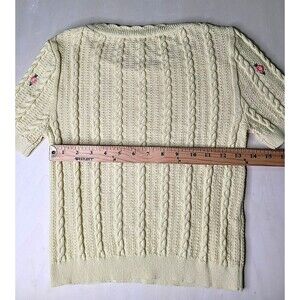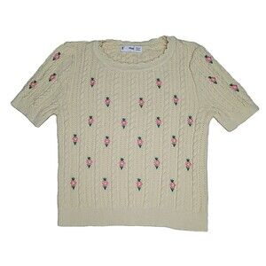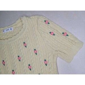 Mango MNG Yellow Knit w/ Roses Short Sleeve Crew Neck Size Small Sweater