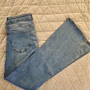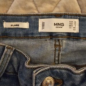 MANGO mid rise flare leg stretchy jeans Size 10 Waist across laid flat a bit over 15" stretches more Rise 9.5” Inseam 32” Zipper closure Stretchy