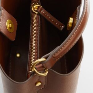 Small, shopper style, padlock detail. Short strap, and long, adjustable removable strap. Zip fastening, and inside magnetic metallic fastening. Inner lining. Chic brown mini bag by Mango. Perfect for everyday use.
