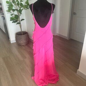 Mango Mng Wms Pink Ruffle Maxi Dress/Gown Sz 10 Wedding Guest Cocktail Party NWT