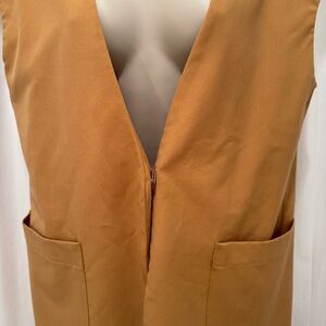 Stylish sleeveless mustard yellow vest. Features two front pockets. Perfect for layering Size M Medium